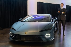 Automobili Lamborghini Chairman and Chief Executive Officer Stephan Winkelmann with the Lamborghini V12 Revuelto. MSRP: From CA$699,394. Photo: courtesy Lamborghini.